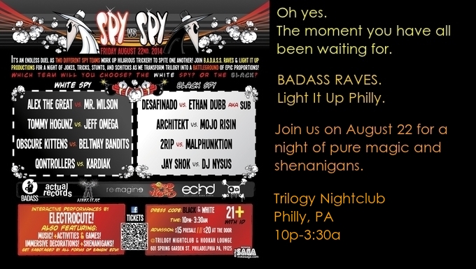 Spy vs Spy : Badass Raves & Light It Up are teaming up August 22!